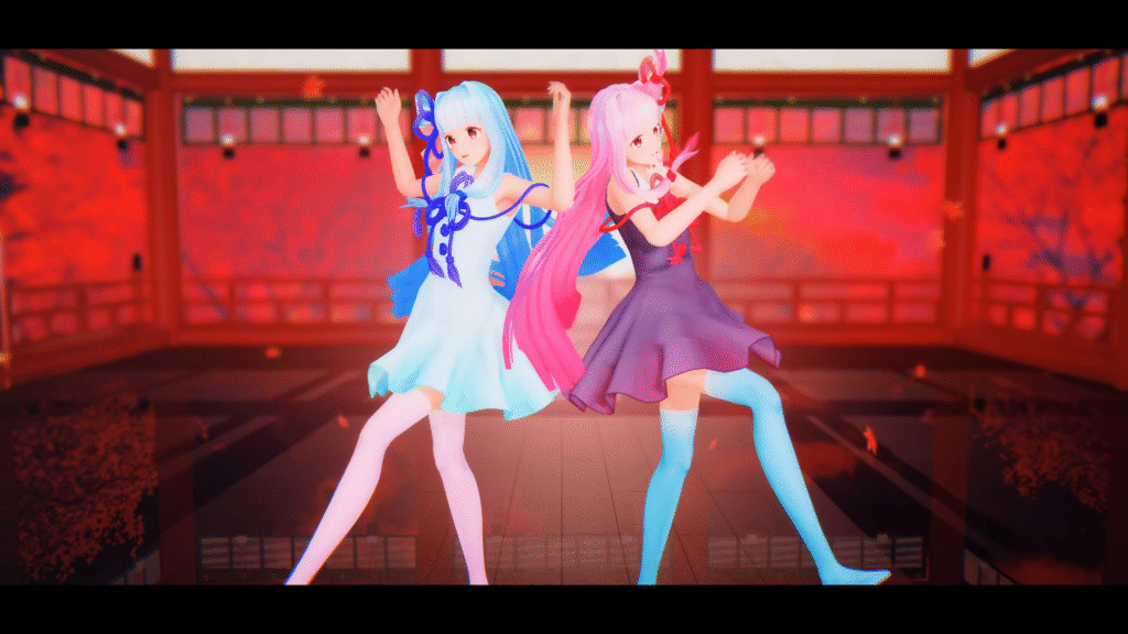 ちょっと大人びた琴葉姉妹のセクシーなダンスです。キレッキレの動きがカッコいい。生足で踊っているシーンや、たまに見えるパンチラがえっちですね…。
