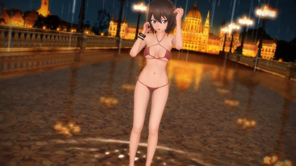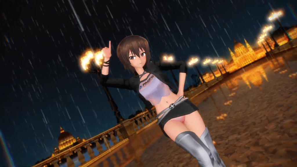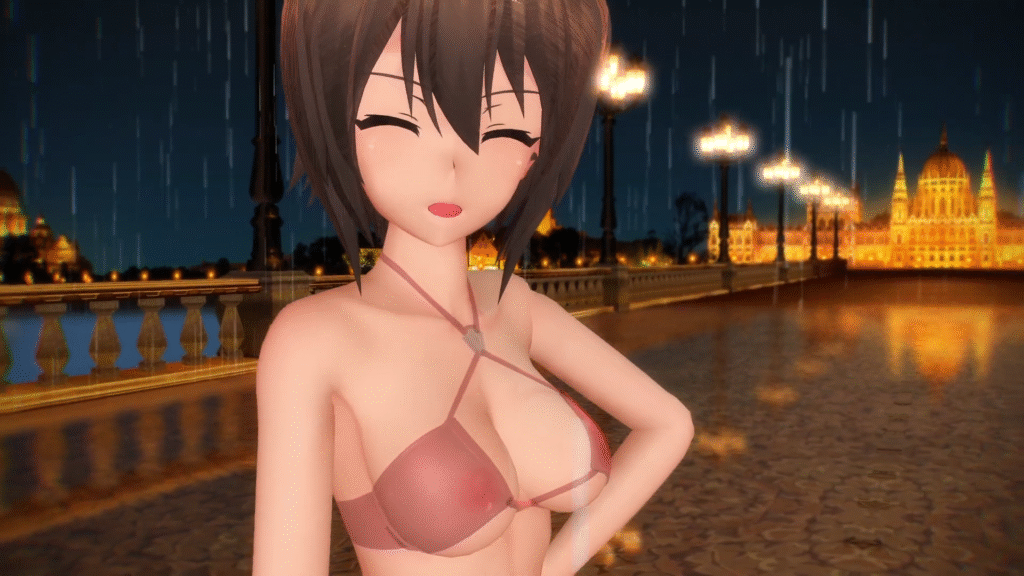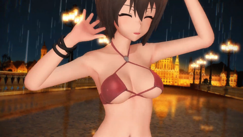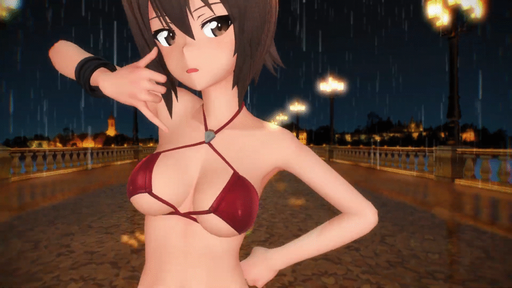 雨の中踊っていますね。どんどん衣装が薄くなってます…。よく見ると透けているような。チラリズム、下着、マイクロビキニとえっちな衣装が盛りだくさん。