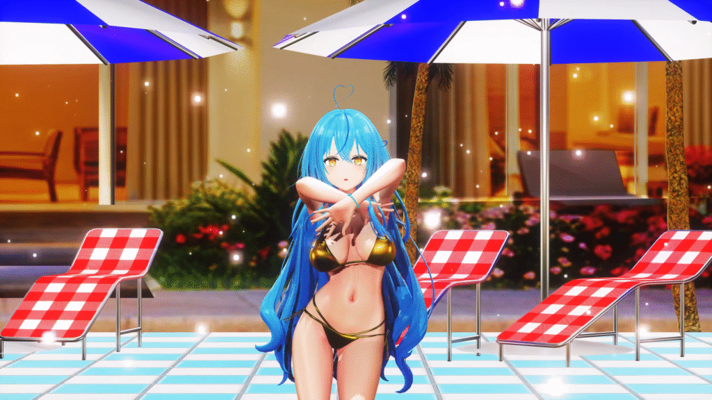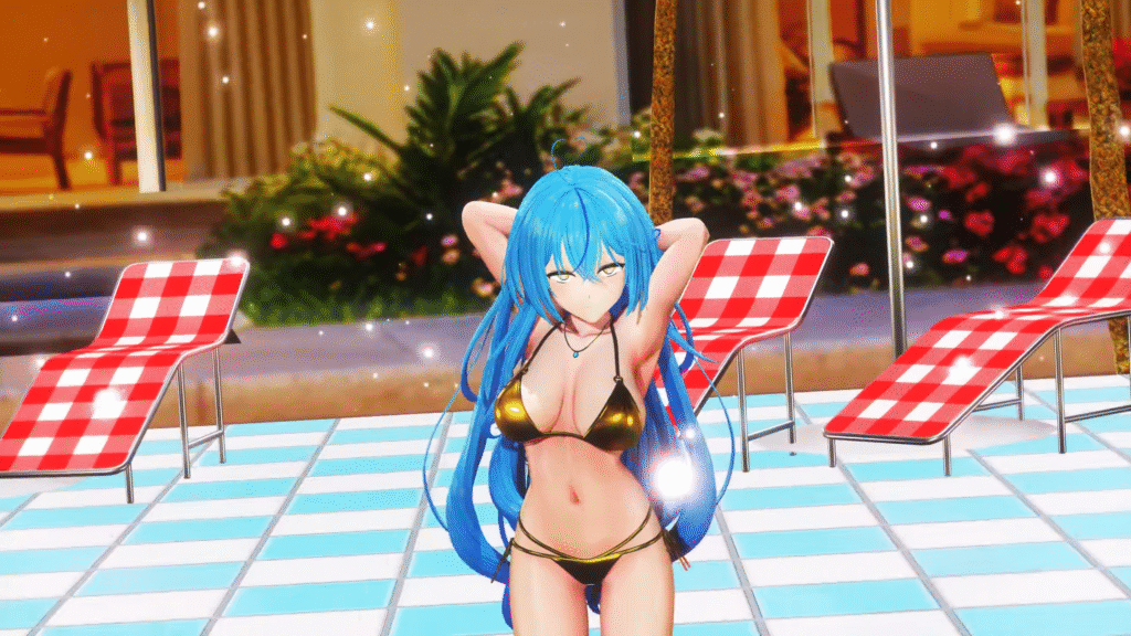 ダイナマイトボディと金色ビキニが最高にセクシー…。おっぱい大きい。
