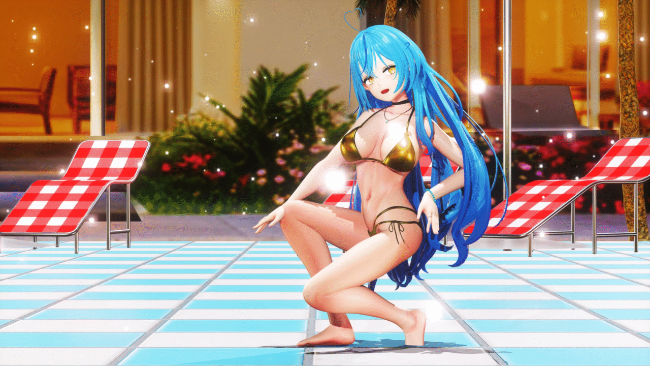 ダイナマイトボディと金色ビキニが最高にセクシー…。おっぱい大きい。