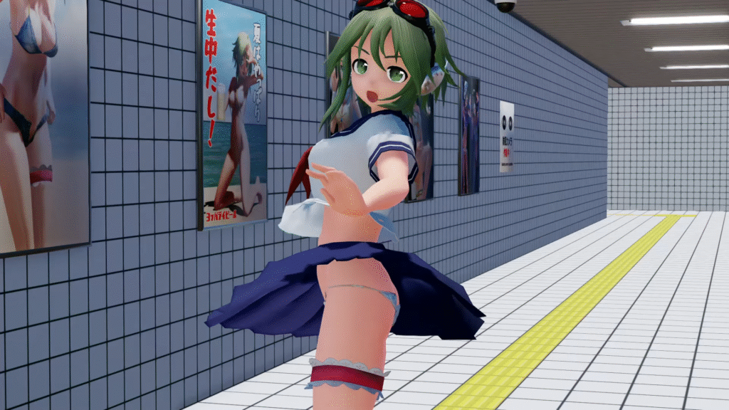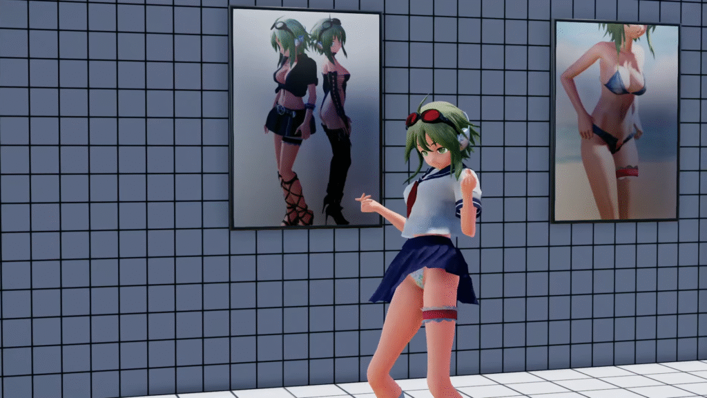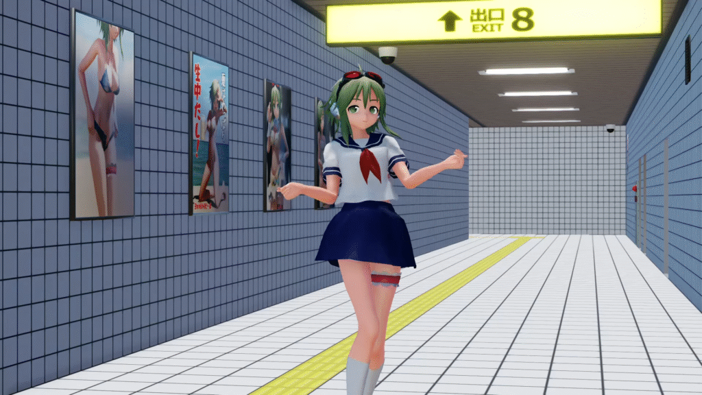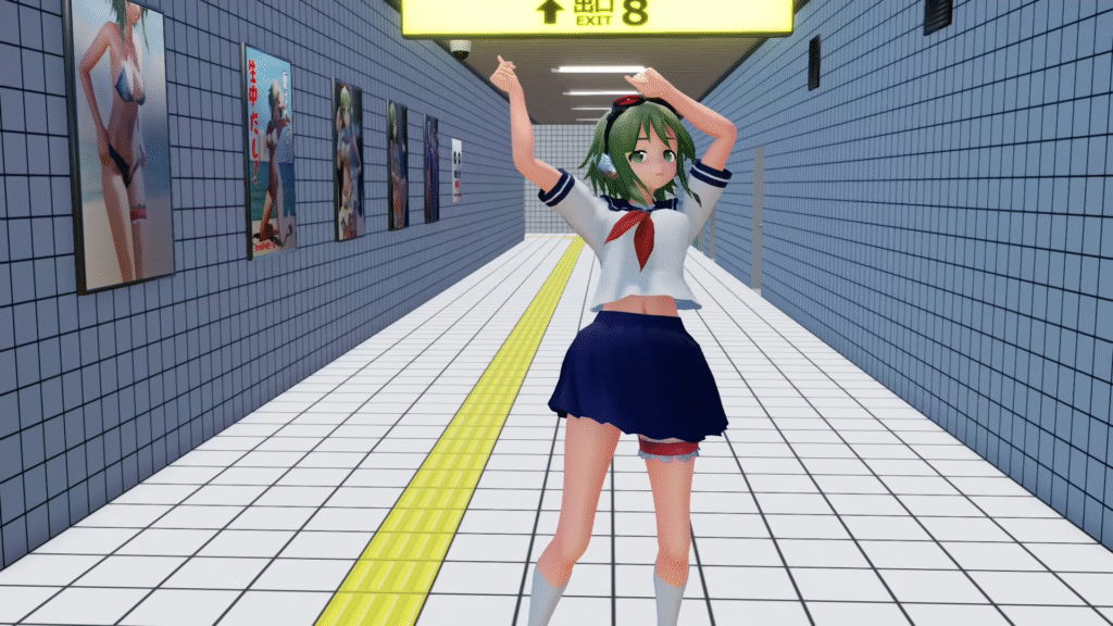 ほど良いミニスカ夏服セーラーでカッコよく踊っています。時おり見えるパンチラがグッド。ポスターに異変があるようですが気付けるでしょうか…?