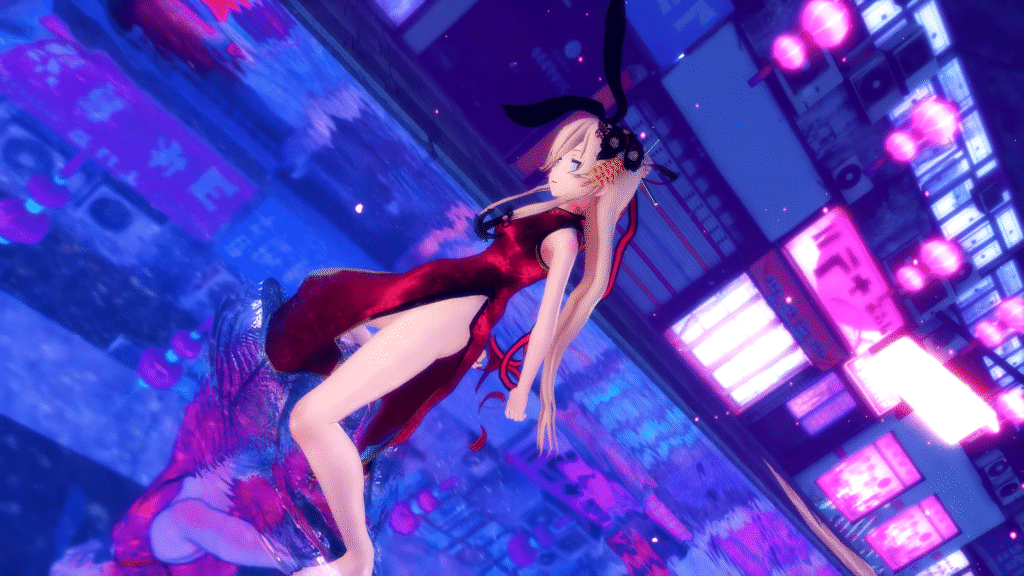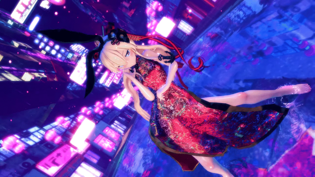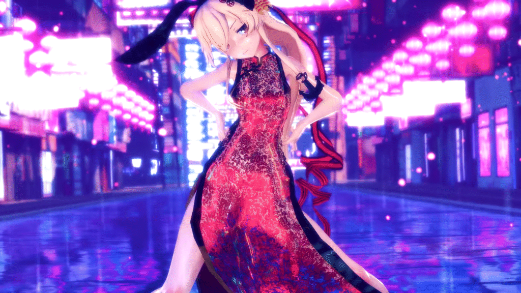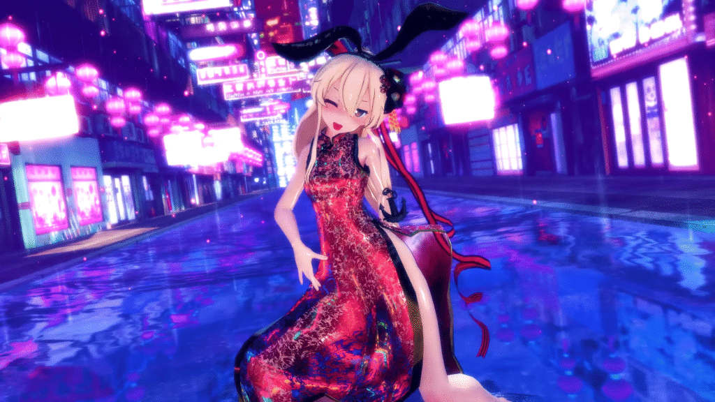 島風ちゃんがチャイナドレスで腰の動きが激しいセクシーなダンスをしています。だんだんと透けていって足のラインが浮き出てくるのがとってもえっち…。